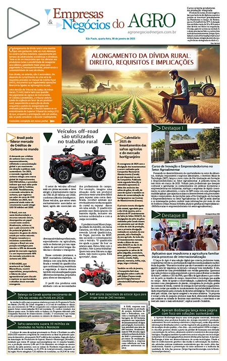 Home > Agenda 566 views 2 secs Suplemento de Agronegócio 08/01/2025 em Agenda terça-feira, 07 de janeiro de 2025 SUPLEMENTOPágina 01Página 02