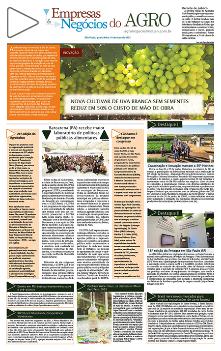 Home > Agenda 562 views 3 secs Suplemento de Agronegócio 14/05/2025 em Agenda terça-feira, 13 de maio de 2025 EDIÇÃO COMPLETAPágina 01Página 02