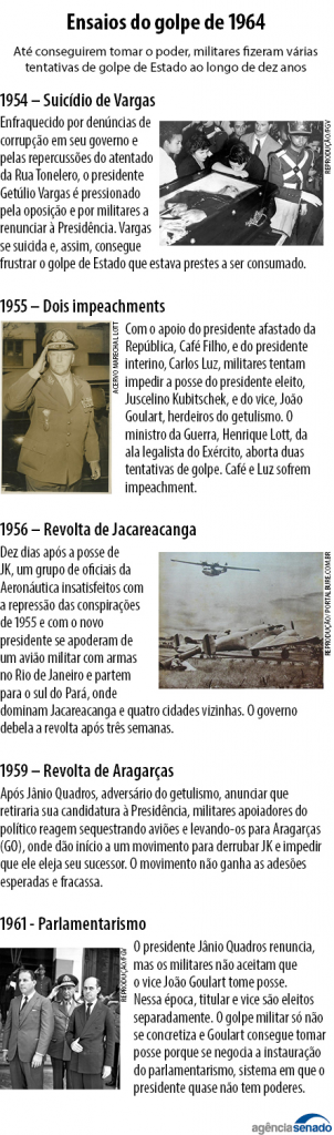 — Quero deixar patente a reprovação da bancada udenista a qualquer movimento subversivo. A nação precisa de paz e ordem para prosseguir no exercício da sua vida democrática. Qualquer perturbação trará profundos prejuízos não à política ou aos partidos, mas à pátria brasileira — concordou o senador João Villasbôas (UDN-MT), líder da oposição ao governo.