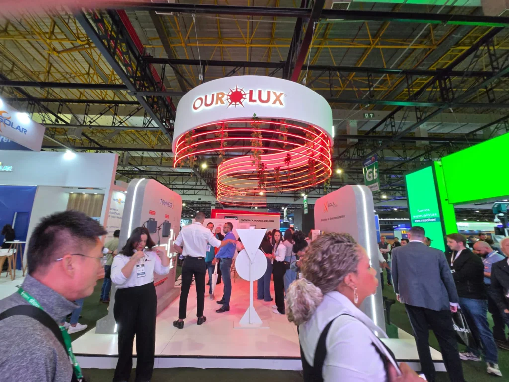 Promoção de inversores e descontos (de 20%) em placas solares foram estratégias utilizadas pela Ourolux na Intersolar. De acordo com Bruno Felipe, gerente de marketing da companhia (que importa da China 100% dos equipamentos), a Ourolux deverá fechar o mês de setembro com um caixa de R$ 37 milhões – 60% dos quais originários da Intersolar, evento que parece valer muito a pena.