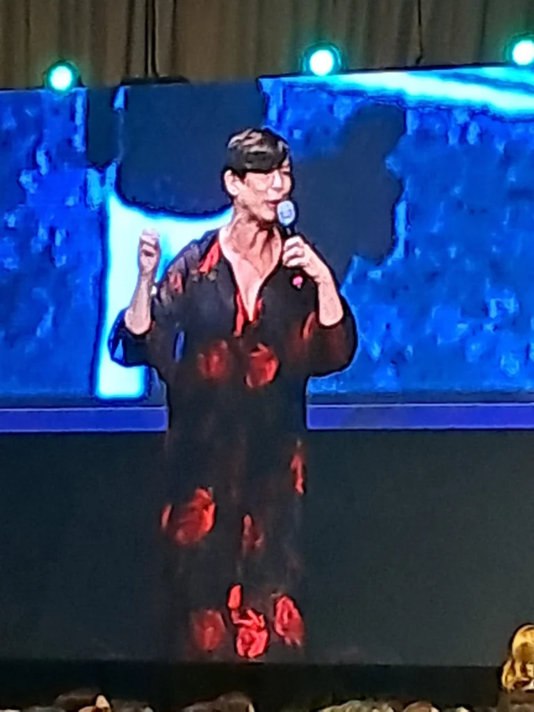Linda, irradiante, do alto dos seus 55 anos, deu um verdadeiro show para os presentes ao Encontro Liberdade para Empreender. “Equilíbrio das Emoções e Liderança Feminina” foi o tema de sua palestra. “Na vida, a gente quer controlar tudo… e quando isto se estende ao mundo corporativo, podemos ficar loucos, já que o imponderável sempre existe e nunca sabemos quando seremos surpreendidos”, enfatizou. Ela advertiu para a necessidade de fugirmos do burnout, citou a medida NR-1 (que passará a vigir no ano que vem, obrigando empresas a ter atenção com a saúde mental dos colaboradores), abordou aspectos da epigenética, neuroplasticidade, nervo vagal etc… “A dor é inevitável, mas o sofrimento é opcional”, lembrou a atriz e psicóloga, que comparou a mente humana ao mar. Maria Paula saiu aplaudida em pé.