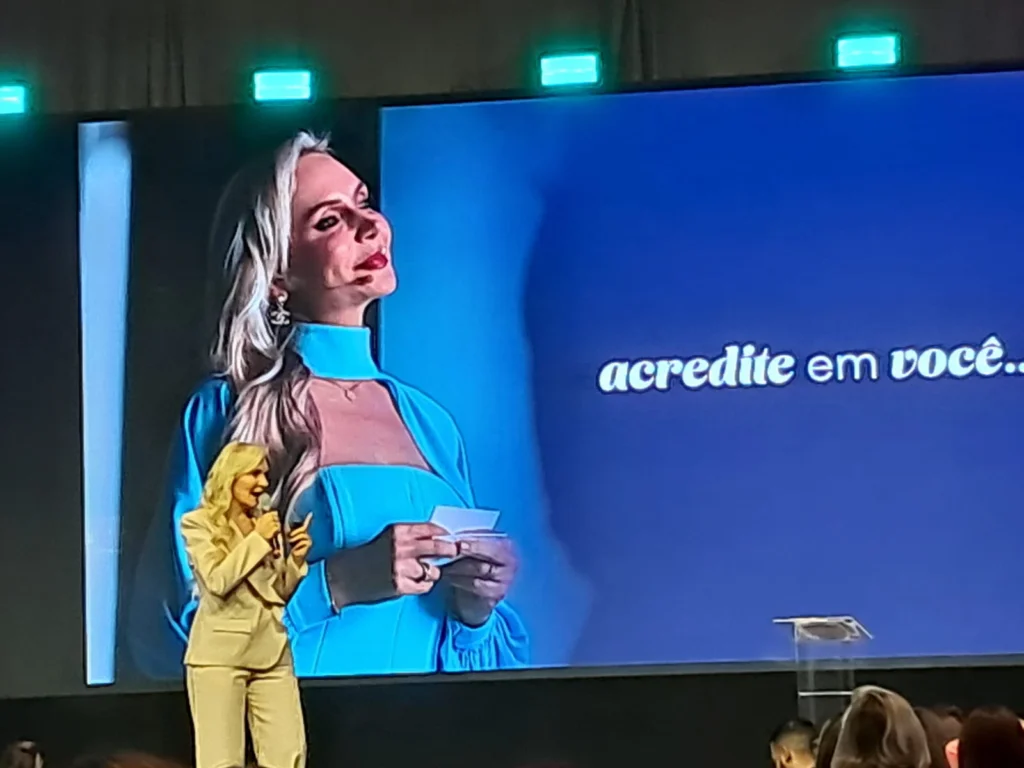 Inteligência Artificial foi um dos painéis apresentados, tendo como palestrantes a psicóloga, estudiosa da neurociência, Fernanda Bornhausen e o estrategista de vendas Raffael Nunes, que tratou de diagnóstico de I.A. “O que vem fazer esse trem no meu negócio?”, ilustrou com a pergunta. Para ele, a dúvida sempre paralisa e deixa as pessoas em suas respectivas “zonas de conforto”. Já a colega de palco, Fernanda, propõe o uso de ferramentas modernas para que a empreendedora tenha mais tempo para si. “É preciso sacudir o seu modelo mental, ganhar mais, perder menos, enfim”, disse ela. Enquanto assistia a performance dos convidados, a plateia lia frases de efeito no telão, como “Você pode retreinar o seu cérebro”; “Ative os hormônios da felicidade” e “Empreender no digital e viver no real”.