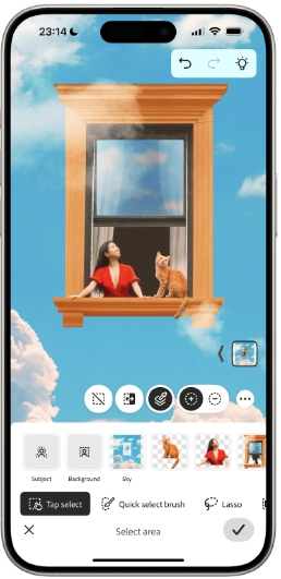 • Acesso à IA generativa da Adobe Firefly, incluindo Preenchimento Generativo e Expansão Generativa, para adicionar elementos e editar fotos com facilidade.