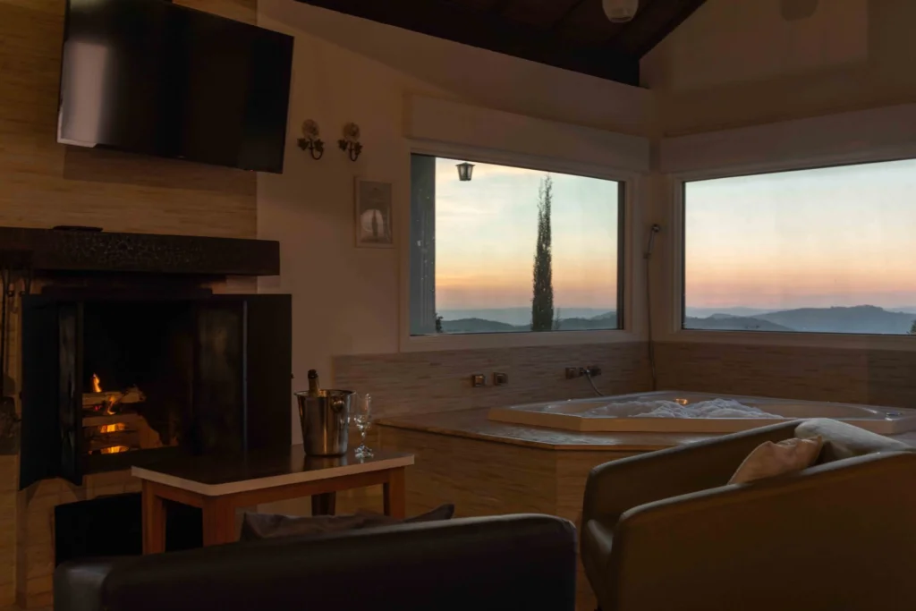 E para completar a experiência, a hospedagem alia charme, conforto e praticidade. A Pousada Pedras e Sonhos, cercada pela natureza, oferece suítes com lareira, banheira de hidromassagem, cromoterapia nas banheiras, ar-condicionado quente e frio e varanda com vista para as montanhas — perfeita para famílias em busca de privacidade. Já a Pousada Jardim da Mantiqueira, próxima ao centro, conta com chalés aconchegantes, sistema de aquecimento, banheira de hidromassagem e ar-condicionado em algumas unidades e até carregador para carros elétricos, além de um belo jardim arborizado. Ambas têm acesso por via pavimentada e oferecem café da manhã farto, preparado com produtos regionais.